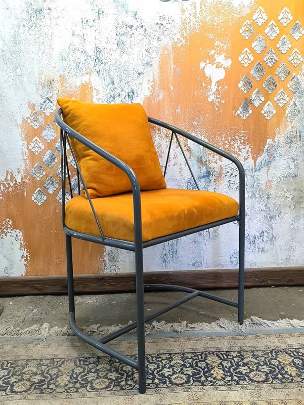 این صندلی نهتنها نقطه کانونی دکور شماست، بلکه با نشیمن نرم و تکیهگاه مناسب، سختترین روزها را به لحظاتی دلپذیر تبدیل میکند. تضاد رنگی قاب فلزی و پارچه نارنجی، فضای شما را با انرژی مثبت پر میکند و حس مدرن بودن را به تصویر میکشد.